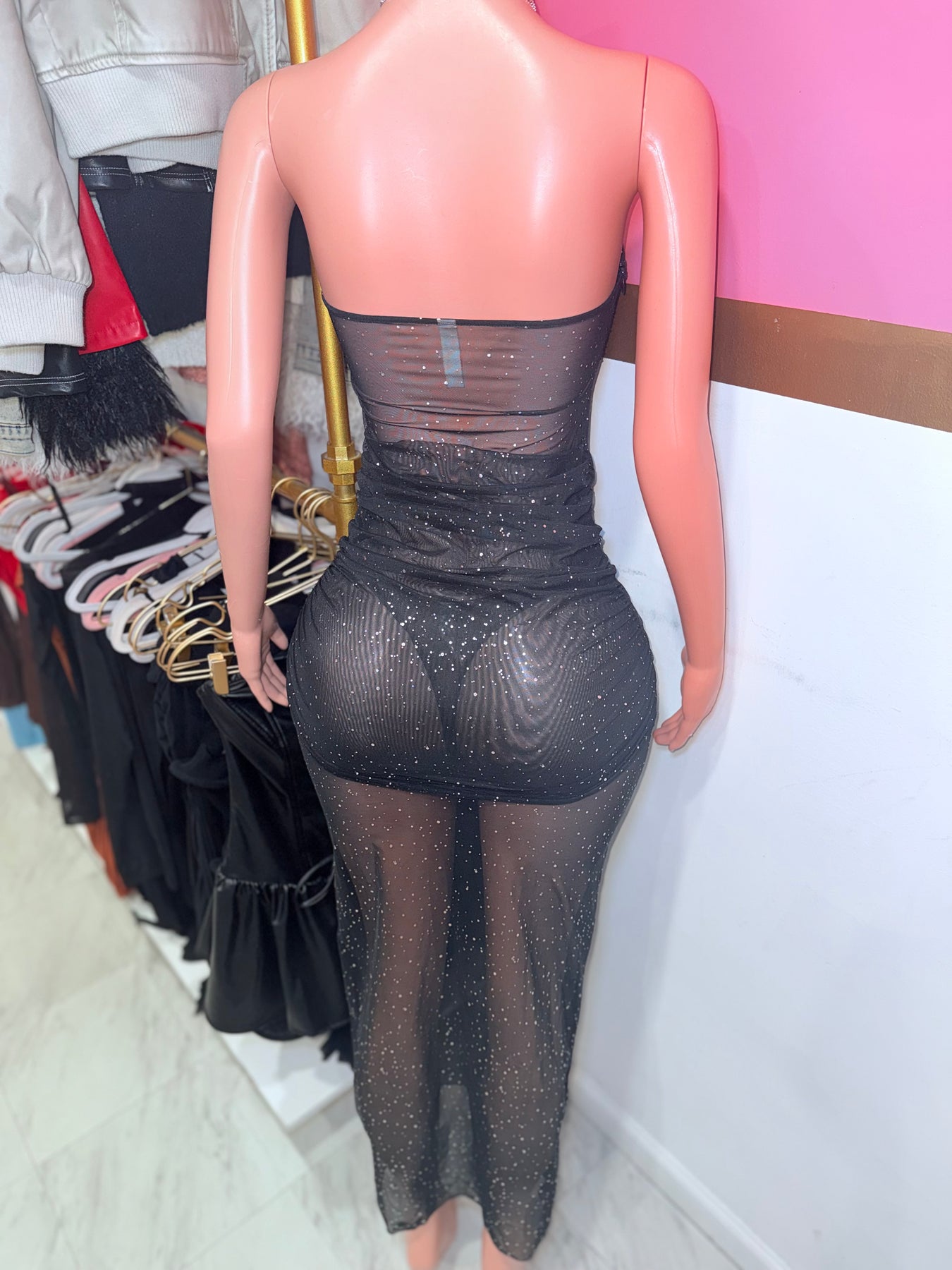 Strapless mesh midi dress