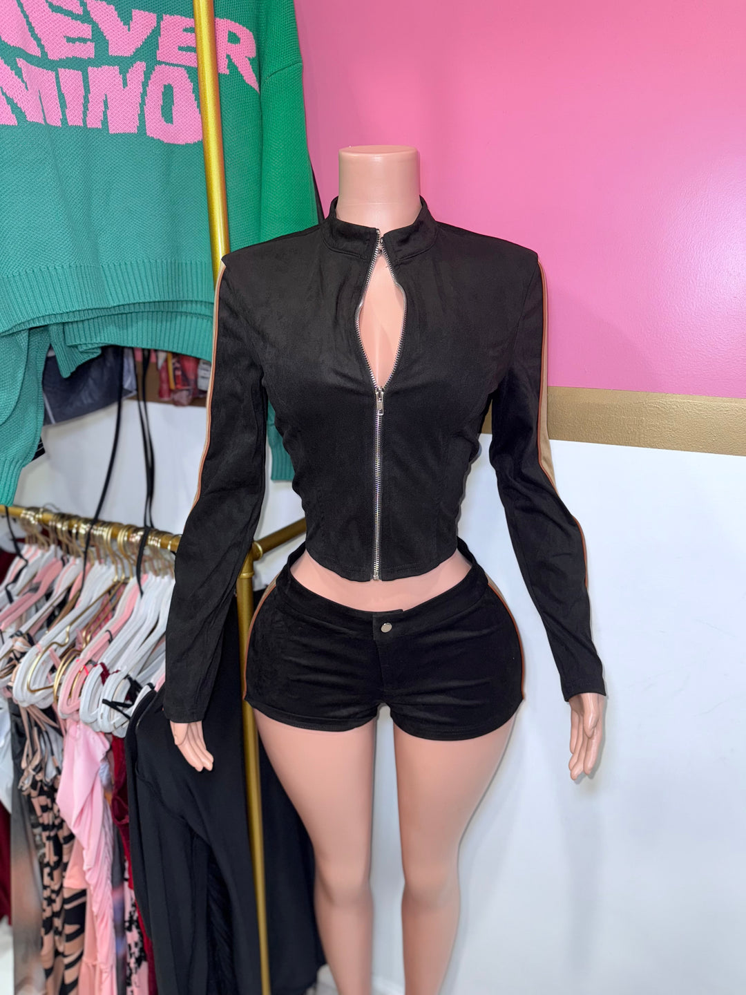 Suede Moto Micro Short Set
